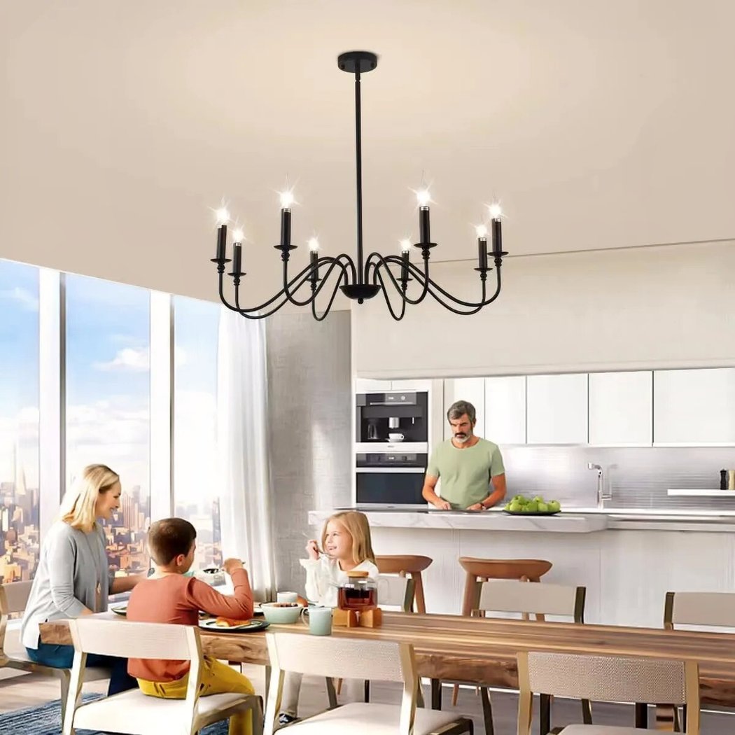 Transform your space into a retro chic destination with the black iron retro chandelier. Its elegant allure and vintage design make it a centerpiece that won't truly go unnoticed. Whether you're looking to add character to your interior or create an intimate atmosphere, this chandelier will meet your needs with flying colors. Treat yourself to a unique lighting experience while captivating the eye with this exceptional decorative element.