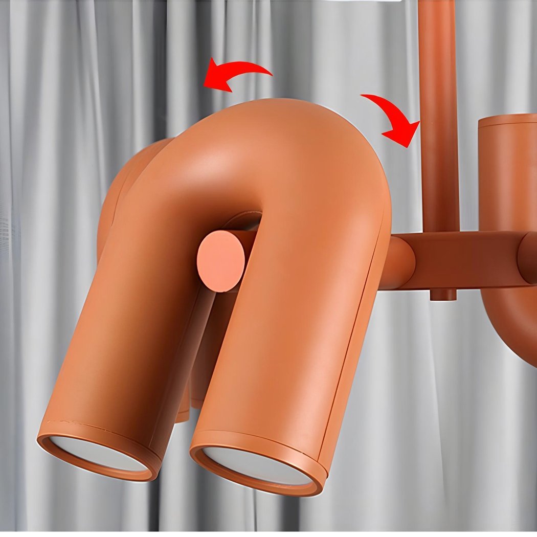 Each of the chandelier's U-shaped elements is equipped with a joint that allows them to swivel. This feature offers the possibility of directing light upwards or downwards, depending on lighting needs and preferences.