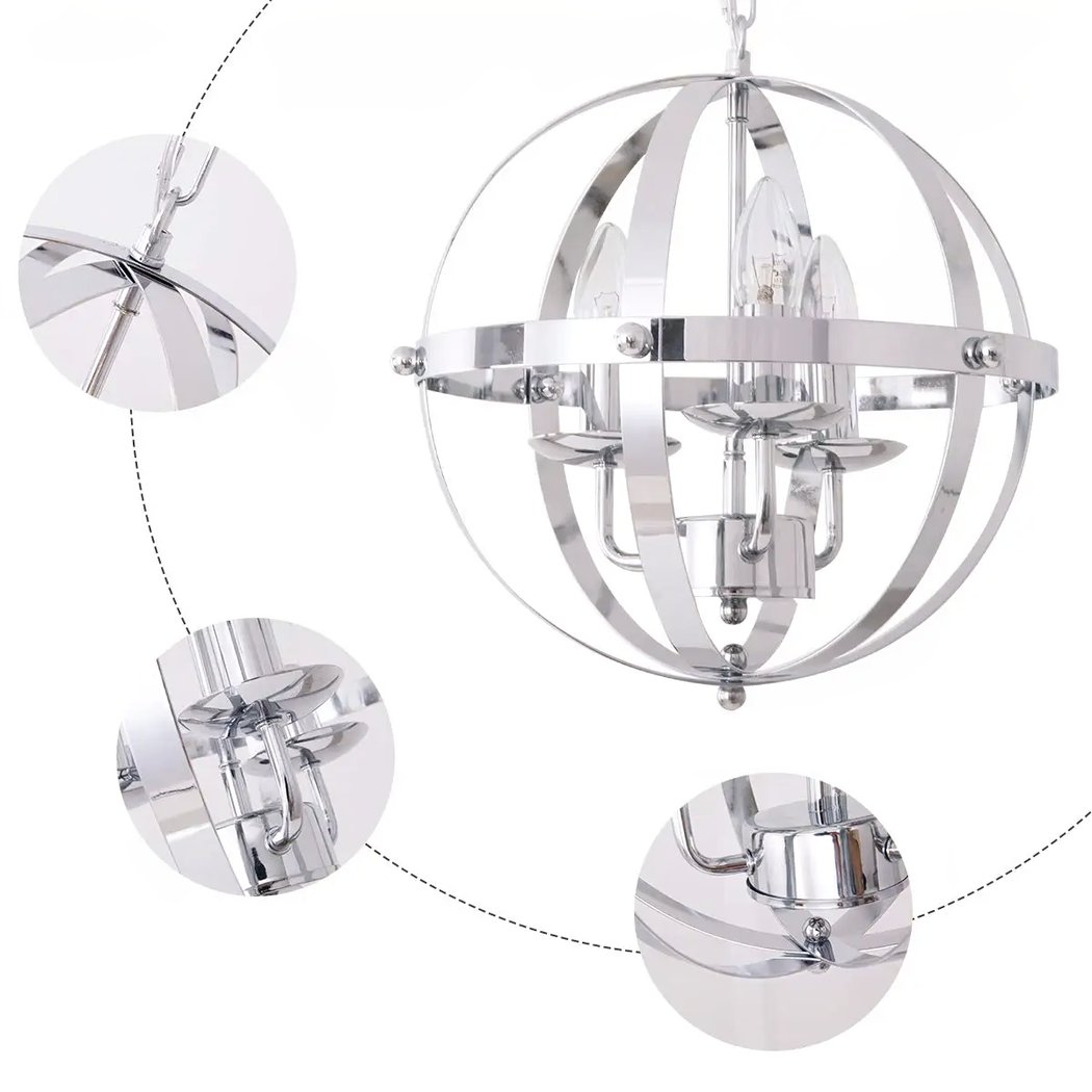 The metal sphere, which houses the chandelier-style bulbs, gives this chandelier a unique and original look that's sure to make a splash in any room of the house.