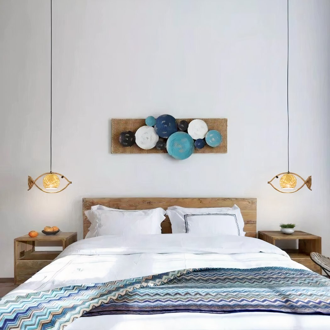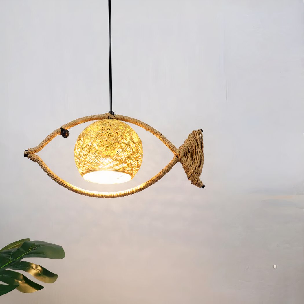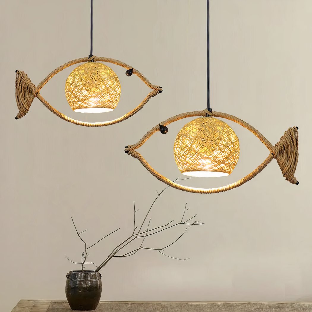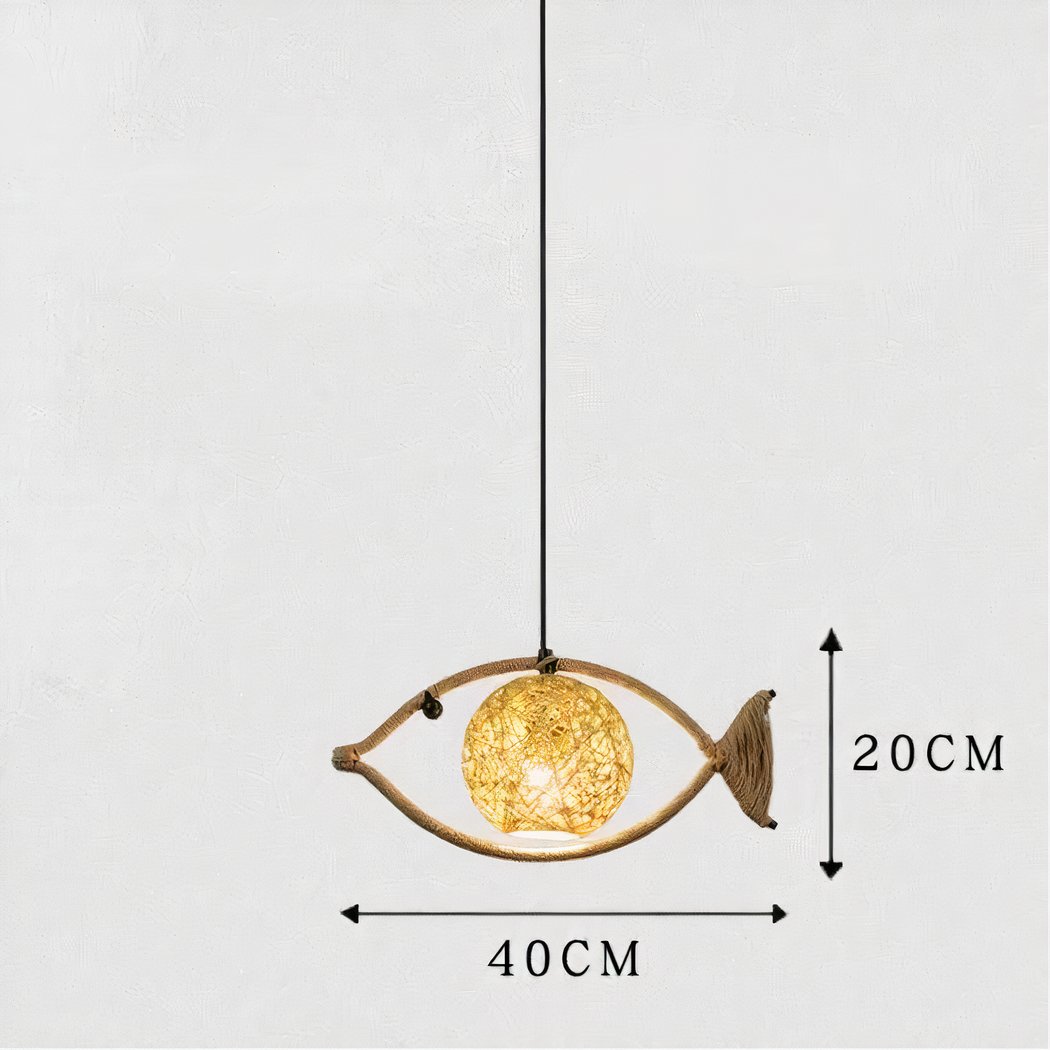 The lampshade of this fish-design rope chandelier is a true creative feat. Imagined in the shape of a ball, it is woven from blended rope, delicately encompassing the bulb. This rope covering diffuses a soft, warm light, creating a welcoming, soothing atmosphere in any space. It transforms any space into a soothing seaside haven. Let yourself be charmed by our adorable fish chandelier.