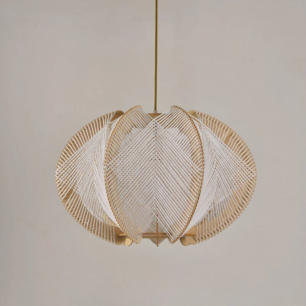 Although it emanates a retro sensibility, this chandelier blends easily into a variety of decors, whether modern, traditional, industrial or bohemian. Its delicate yet striking presence can enhance a living room, bedroom or even an entrance hall. Its soft, subdued lighting creates a warm ambience, inviting relaxation and contemplation. Let yourself be seduced by wood and woven cord chandelier in retro design.