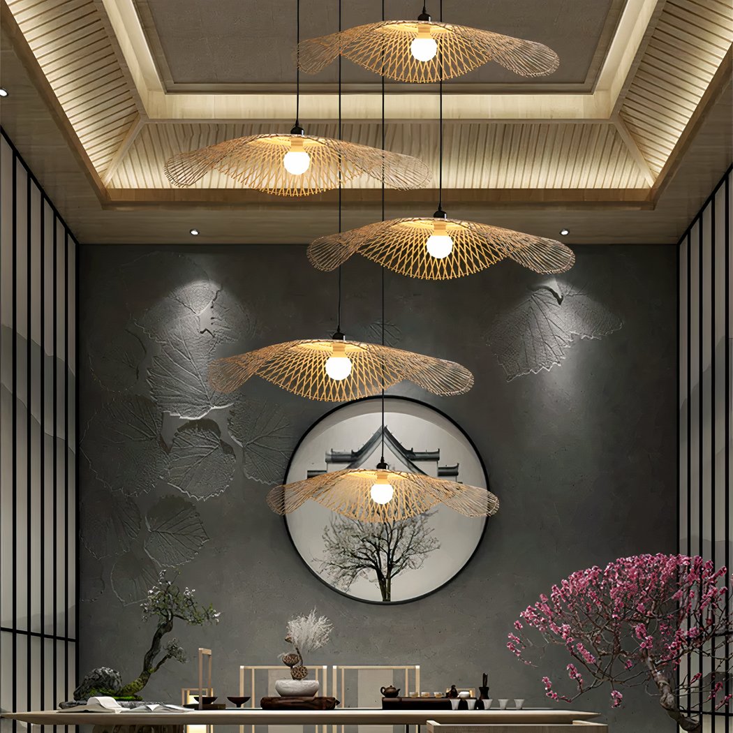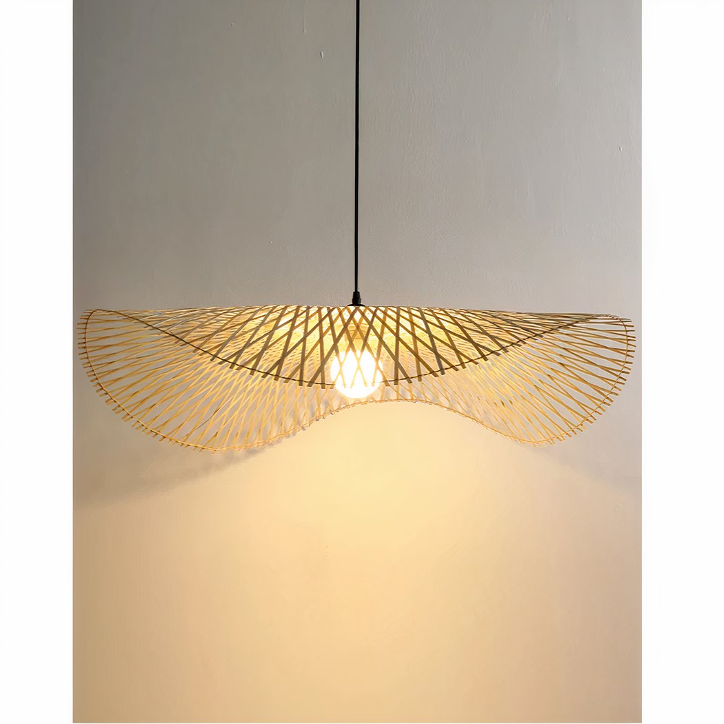 The natural texture of bamboo diffuses light subtly, adding a touch of rustic charm to your space. Imagine relaxing under this soft light, letting your worries fade away in this soothing, welcoming atmosphere.