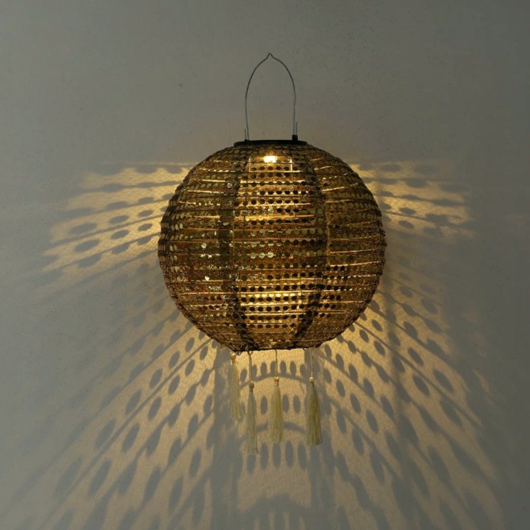 Add a unique touch to your outdoor space with the bohemian-style LED solar suspension.