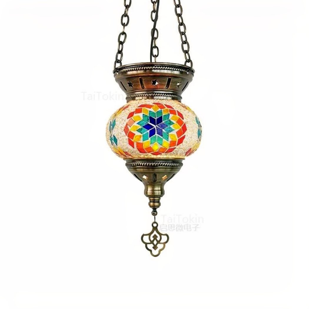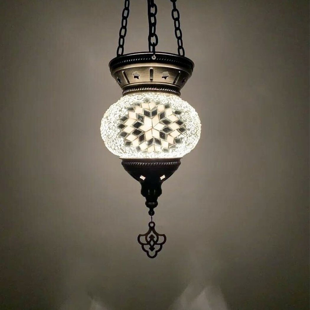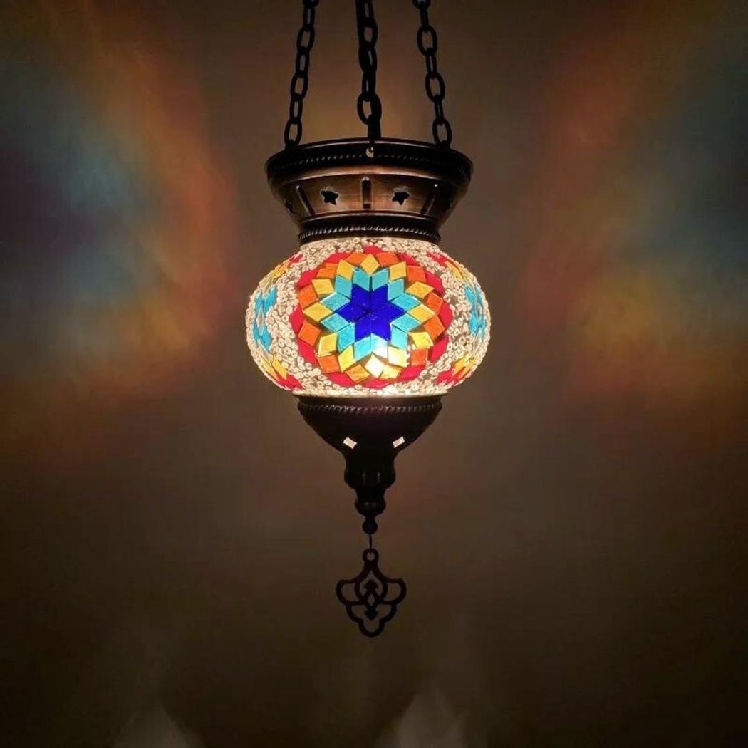 This multicolored hanging lamp is inspired by the warm, enchanting decor of Moroccan riads, inviting you on a sensory journey to the heart of the Orient. With its exotic motifs and vibrant colors, it creates an authentic, out-of-this-world atmosphere in your home, conducive to relaxation and conviviality.