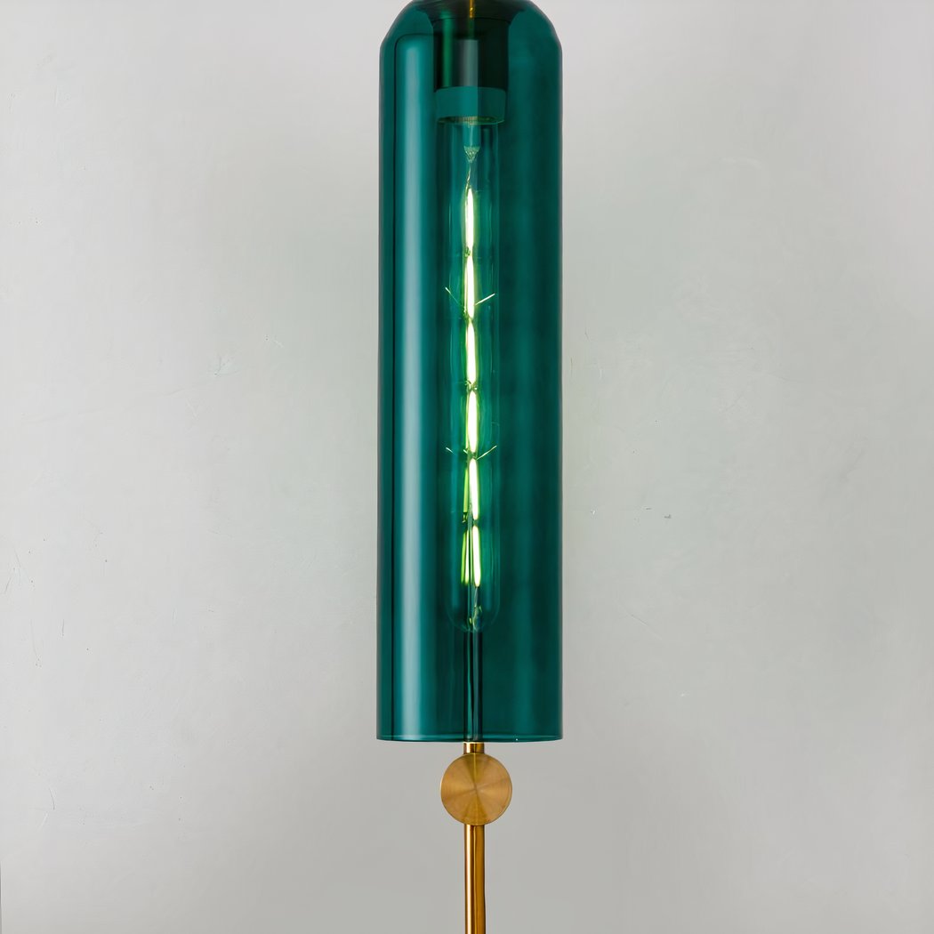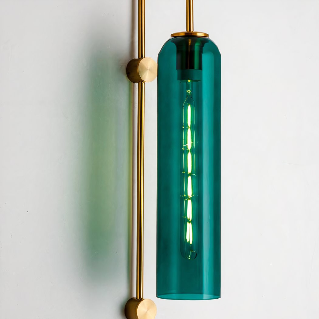 Sublimate your space with our duck blue glass tube wall light with gold fixture. With its modern design and minimalist charm, this lamp is the ideal accessory for adding a touch of contemporary elegance to any room.